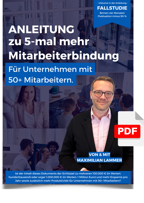 Autor dieser Anleitung ist Maximilian Lammer, einer der führenden Experten für das Thema Mitarbeiterbindung im deutschsprachigen Raum, dessen erprobte Methode sowohl bekannte Unternehmen wie dm, McDonald's oder Thalia, aber auch kleine Unternehmen mit 30, 50 oder 80 Mitarbeitern einsetzen.
